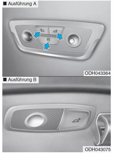 Benutzen Sie Innenraumbeleuchtung nicht zu lange bei abgestelltem Motor, da andernfalls die Batterie entladen wird.