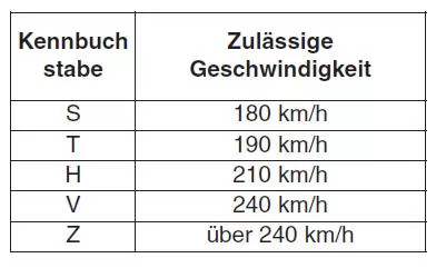 Reifenkennbuchstaben für die zulässige Höchstgeschwindigkeit