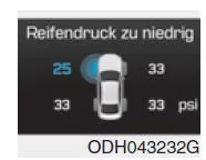 Warnleuchte "Reifenluftdruck zu niedrig"