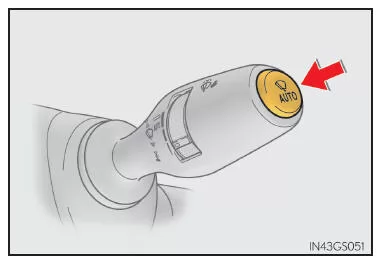 Die Scheibenwischer können als Intervall-Frontscheibenwischer verwendet werden, die unabhängig von der Geschwindigkeit und der Menge der Regentropfen arbeiten. Sie können auf den Frontscheibenwischer-Intervallbetrieb umschalten, wenn das Fahrzeug steht und die Scheibenwischer ausgeschaltet sind. Der Scheibenwischerbetrieb kann nicht umgeschaltet werden, wenn der Modus "AUTO" aktiviert ist oder wenn die Frontscheibenwischer gerade im Intervallbetrieb arbeiten.