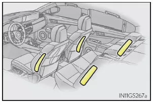 Bei einem Seiten- oder Heckaufprall, beim Überschlagen des Fahrzeugs oder bei einem Frontalaufprall mit niedriger Geschwindigkeit werden die SRS-Frontairbags in der Regel nicht ausgelöst. Bei plötzlicher starker Verzögerung der Vorwärtsbewegung durch einen Unfall kann es jedoch zum Auslösen der SRS-Frontairbags kommen.