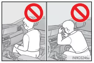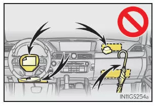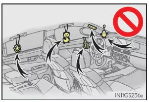 Diese Gegenstände können zu Geschossen werden, wenn die SRS-Airbags für Fahrer und Beifahrer und die Knieairbags ausgelöst werden.