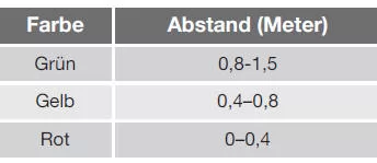 Farbige Felder (ein Feld pro Sensor) zeigen den Abstand an.